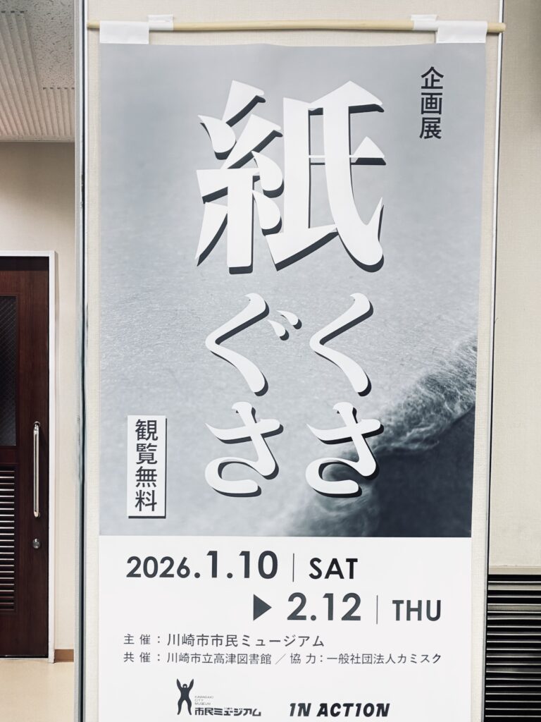 私が理事を務める一般社団法人カミスクは、1月10日~2月12日まで、川崎市市民ミュージアム主催の企画展「紙くさぐさ」に参加しています。