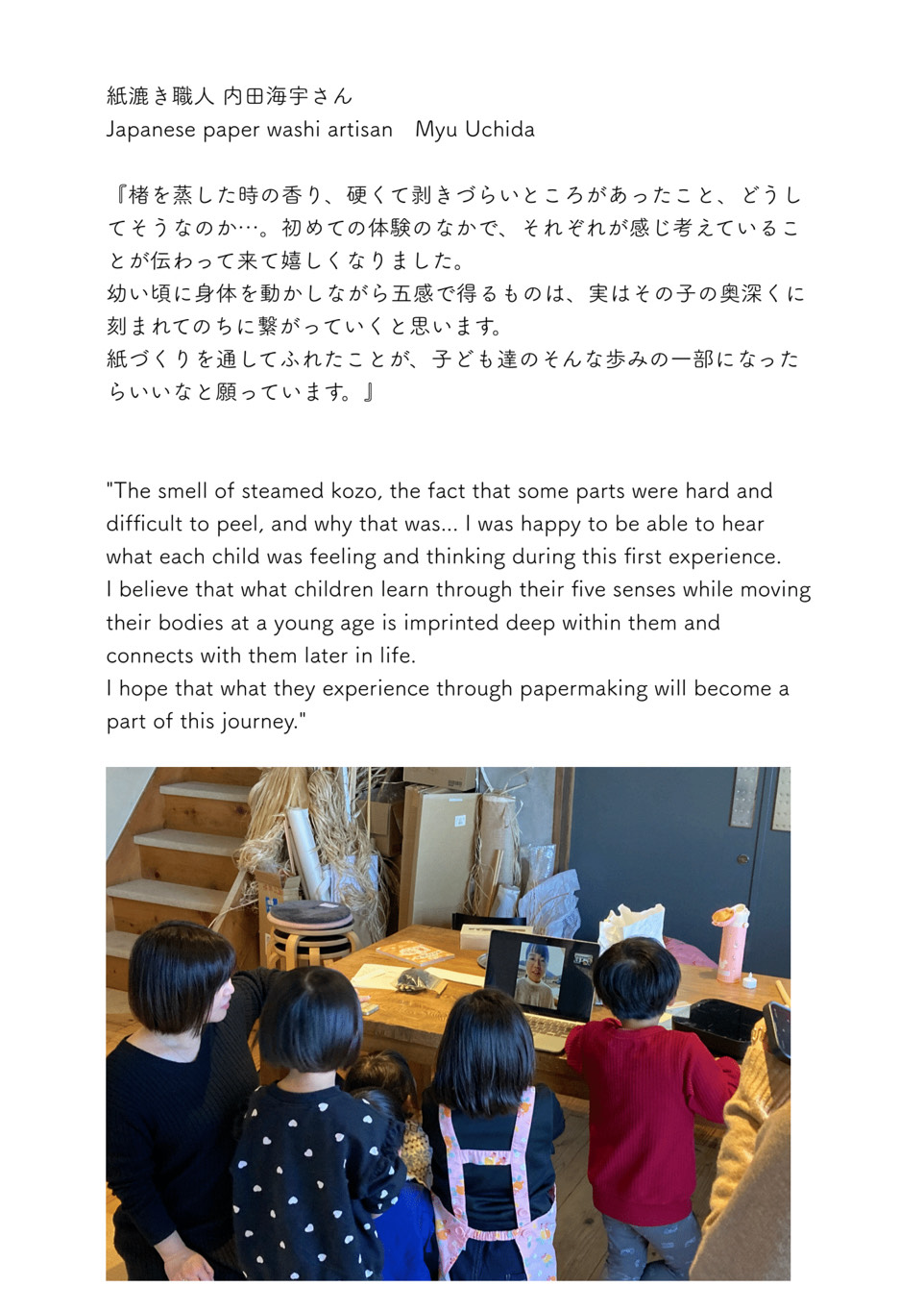 子どもの活動の中でICT教育をどのようによりよく展開するかをテーマに、オンラインを活用、高知県の紙漉き職人とつながりました。