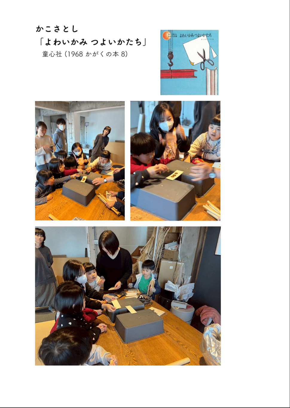 また、かこさとしさんの生誕100年にあたり、絵本「よわいかみつよいかたち」実験を、